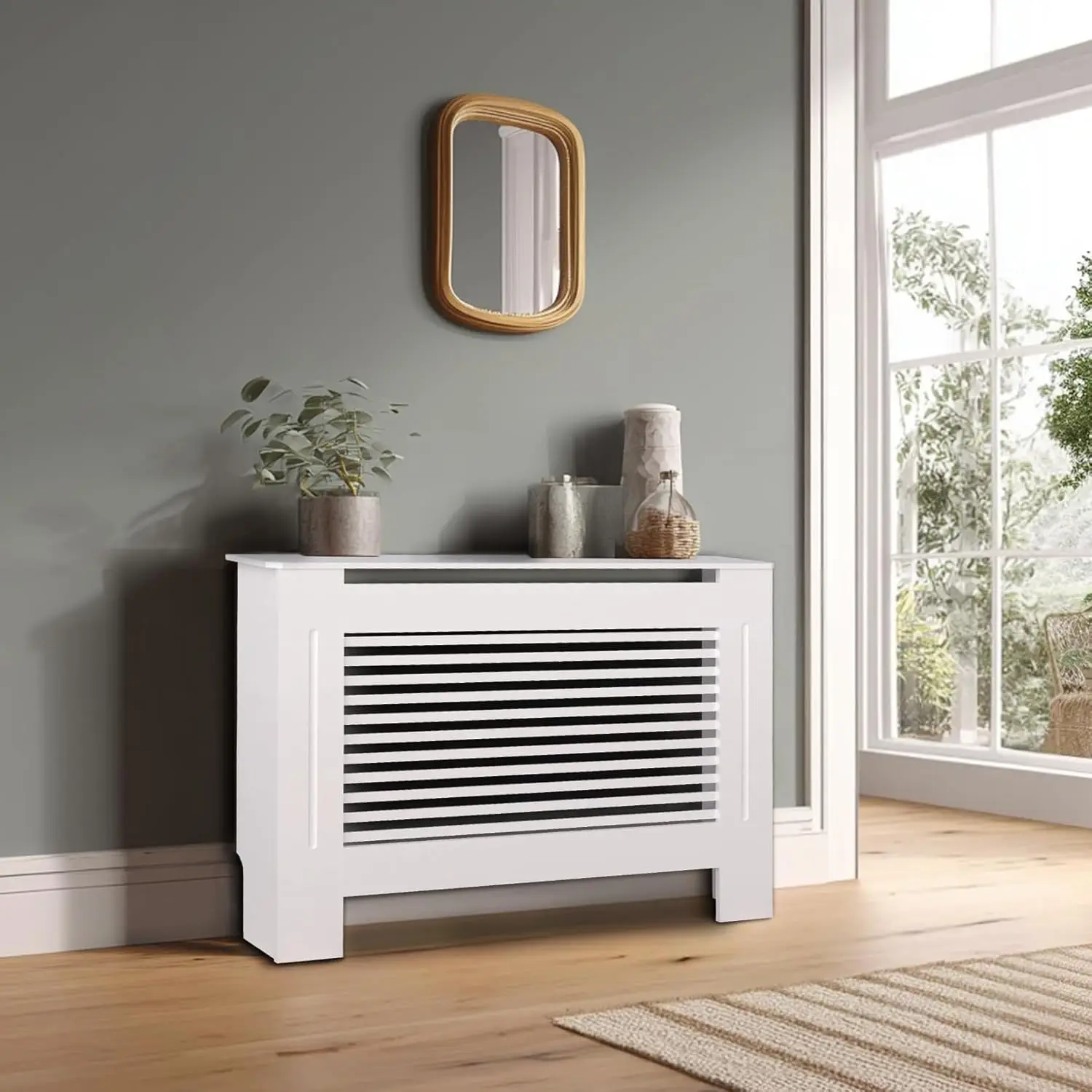 100cm Radiator Cover Modern MDF Wood Slat Living Room Bedroom Hallway Cabinet for Room Decoration