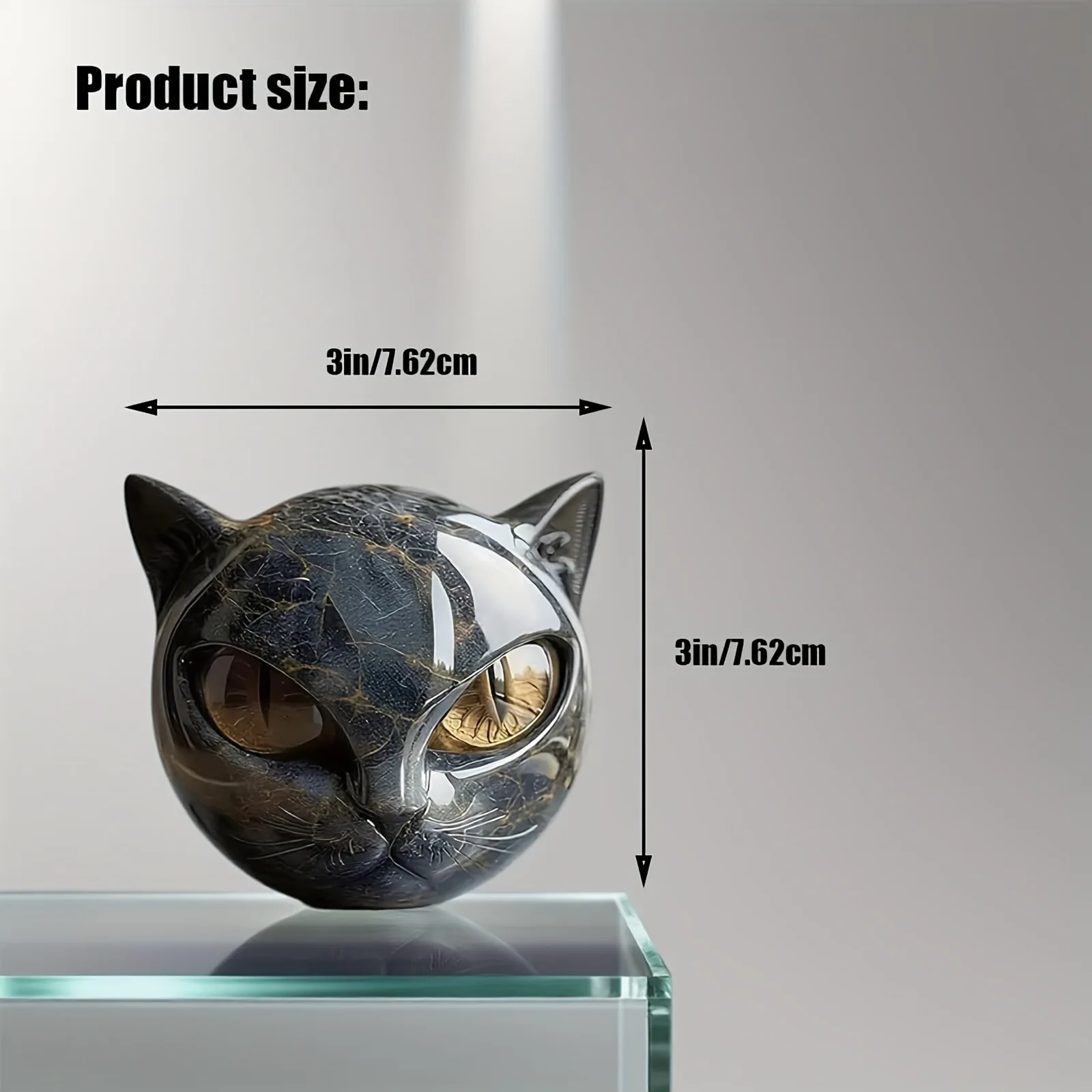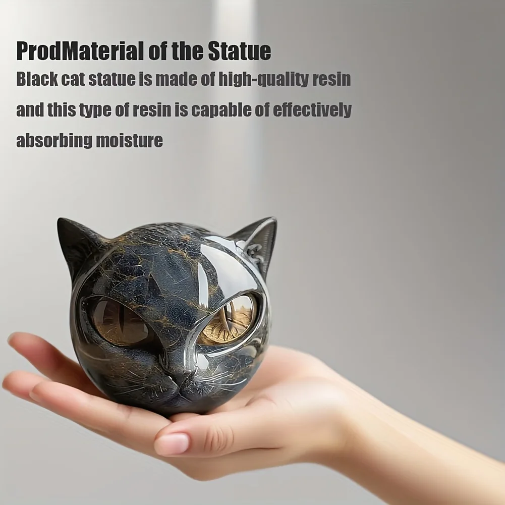 Decorative Black Cat Stone Figurine Resin Cat Head Healing Stone Marble Texture Cat Stone Keepsake Gift Office Desk Cats Decor