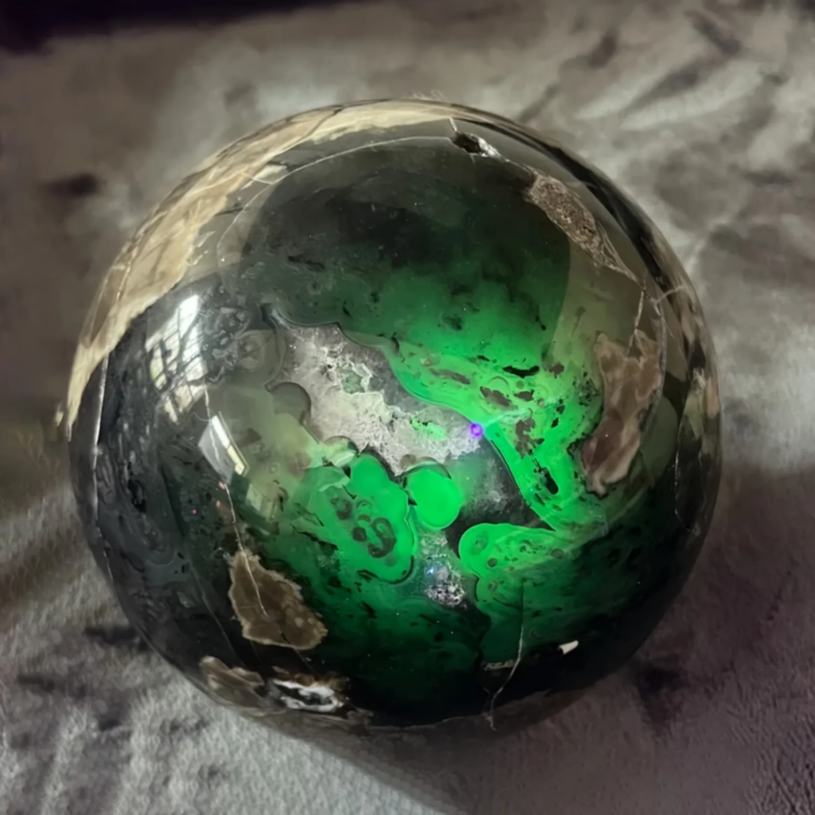 Natural Volcanic Agate Sphere with UV Reactive Fluorescence,Crystal Ball Ornament, Home Decoration, Souvenir Gift