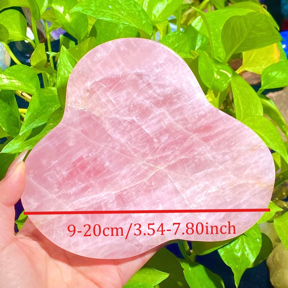 Rose Quartz Plate Bowl Dish Hand Carved Crystal Gift Healing Stone Tray Freeform Quartz