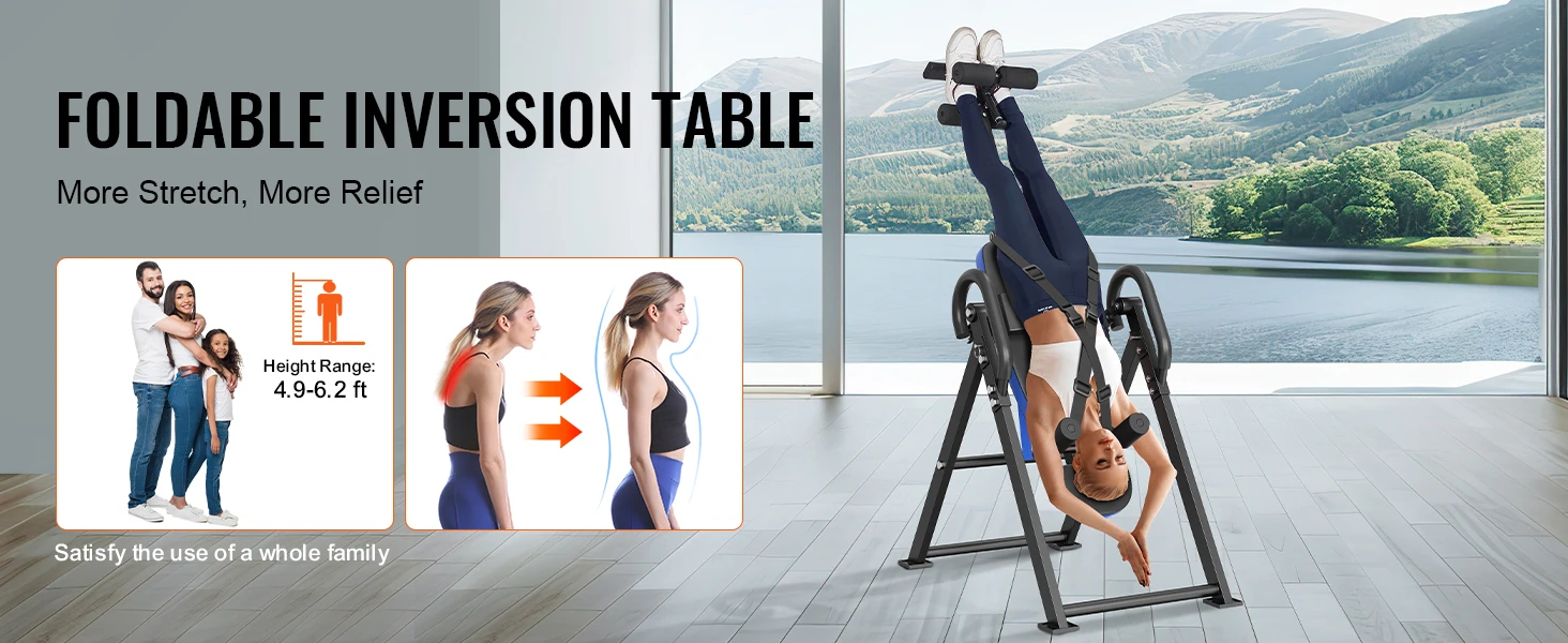 4.9-6.2 ft Adjustable Heights: Our folding inversion table is height adjustable, making it suitable for all family members. Whether you're tall or short, you can easily adjust the table to fit your height, ensuring a comfortable and effective inversion experience for everyone.