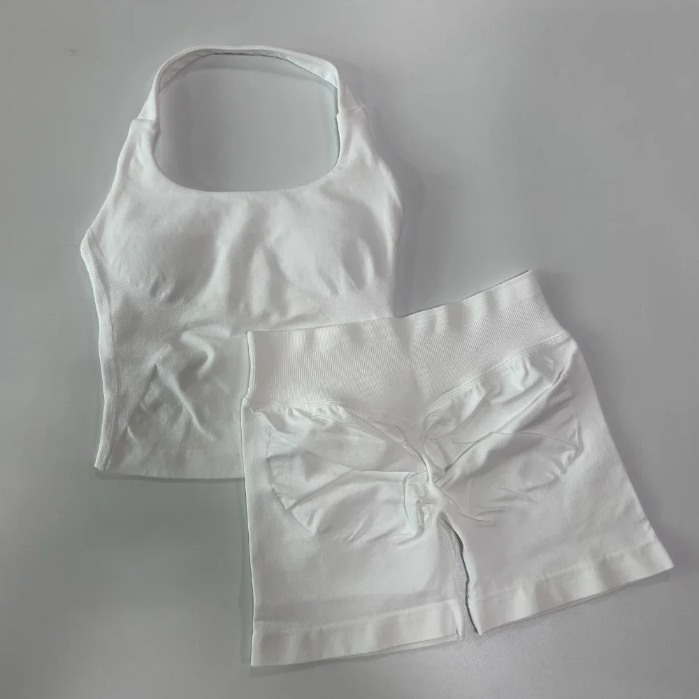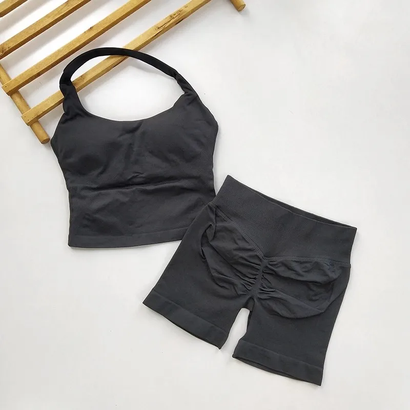 Yoga 2 Pieces Gym Set Women Backless Halter Tops High Waist Seamless Shorts Gym Suit Fitness Sports Bras Sportswear Workout Sets